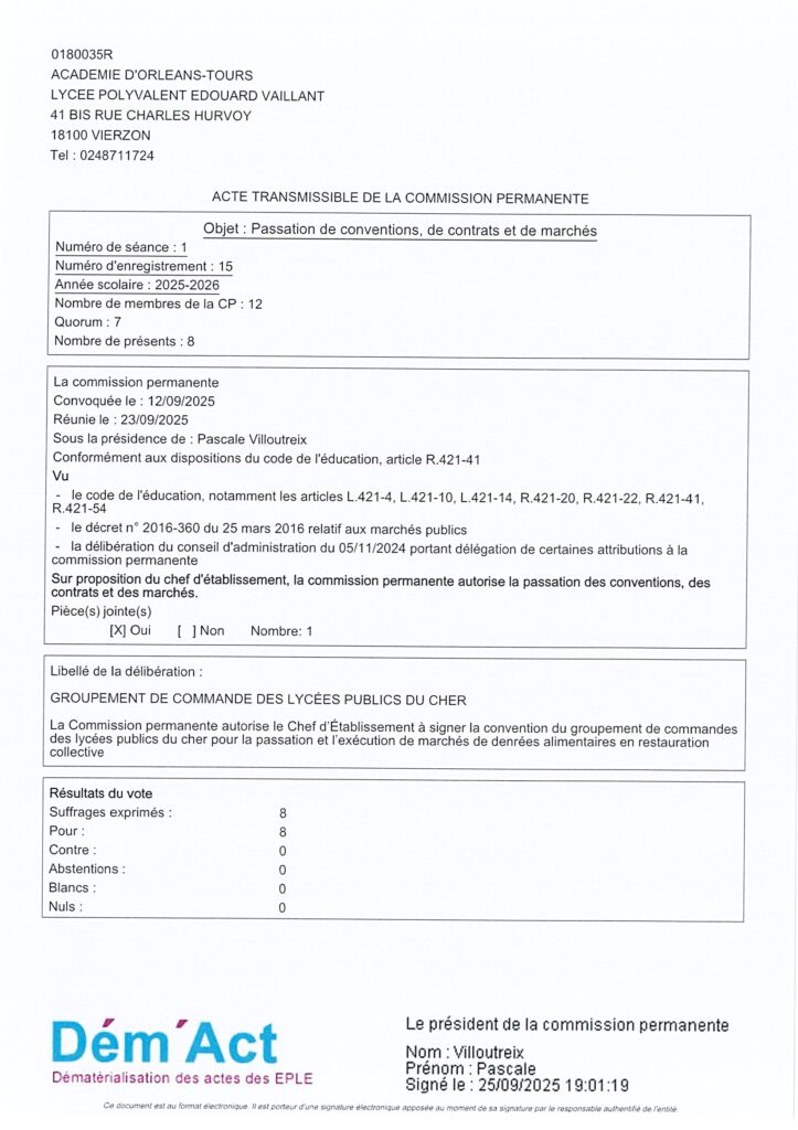 Actes CA Acte 15/ 2025-2026 Passation de conventions, de contrats et de marchés 29 septembre 2025 Sandrine MAUTAINT