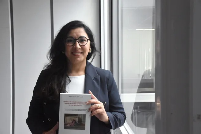 C’est cette réflexion qui irrigue, nourrit sa vie depuis de nombreuses années. Comme enseignante d’anglais, un métier qu’elle a exercé à Bourges, à Avord et à Vierzon aujourd’hui, toujours avec « une volonté d’ouverture à l’international, des échanges et des voyages ». Comme formatrice en numérique éducatif, aussi, une fonction qu’elle a endossée au cours de la dernière décennie. Et, enfin, comme chercheuse, autrice d’une thèse en diplomatie et relations internationales dédiée au rôle de l’éducation à la citoyenneté dans la construction d’une paix et d’une sécurité durables à l’ère du numérique.