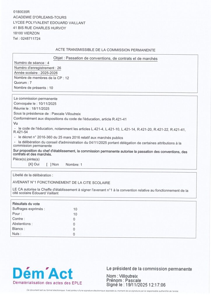 Actes CA Acte 26/ 2025-2026 Passation de conventions, de contrats et de marchés 21 novembre 2025 Sandrine MAUTAINT