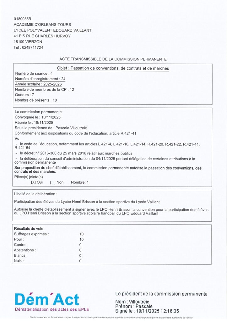 Actes CA Acte 24/ 2025-2026 Passation de conventions, de contrats et de marchés 24 novembre 2025 Sandrine MAUTAINT