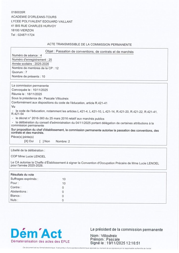 Actes CA Acte 25/ 2025-2026 Passation de conventions, de contrats et de marchés 24 novembre 2025 Sandrine MAUTAINT