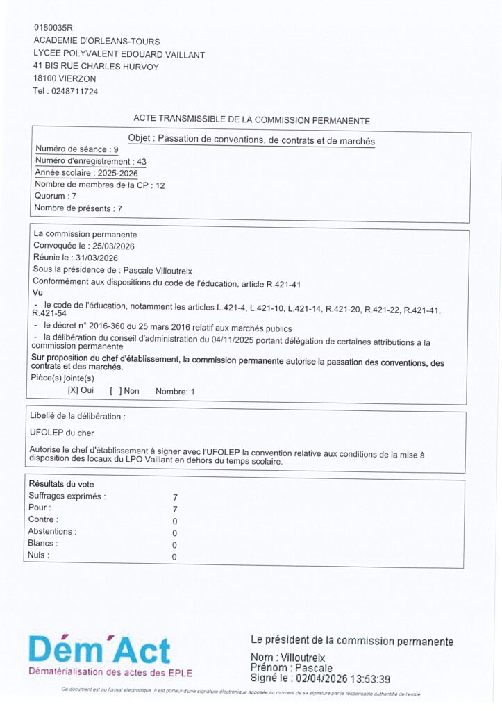 Actes CA Acte 43 -2025/2025 Passation de conventions, de contrats et de marchés 7 avril 2026 Sandrine MAUTAINT
